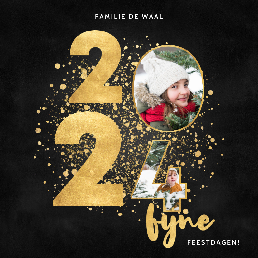 Stijlvolle kerstkaart 2024 gouden spetters | Kaartje2go