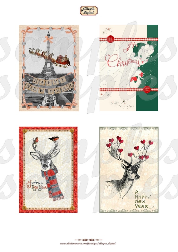 4 druckbare Weihnachtskarten Vintage Retro Rentier Etsy Österreich