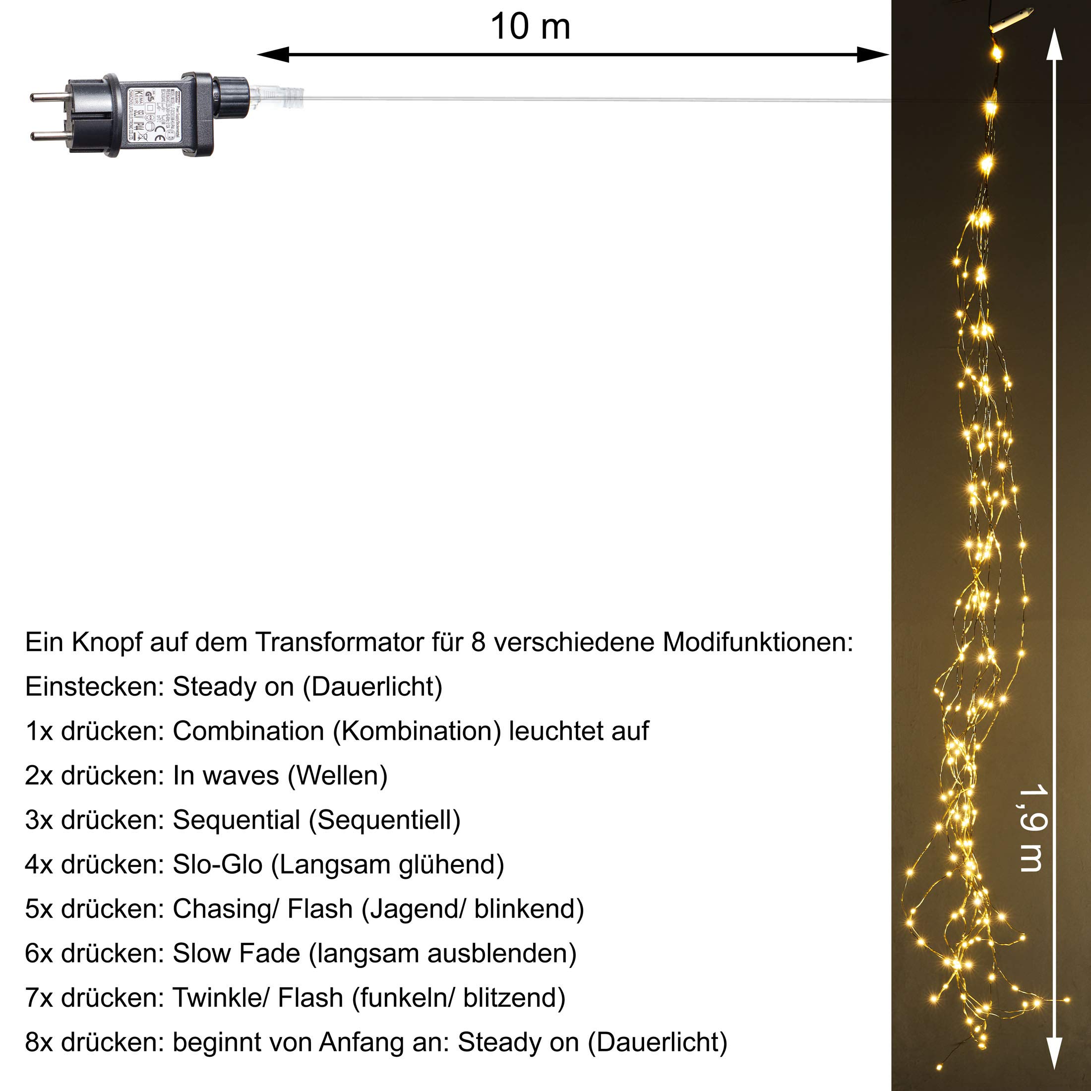 Amare LED fairy lights with mains plug for indoor and outdoor use